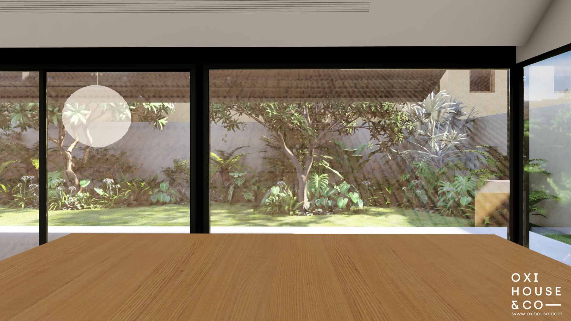 - Kết Nối Trong - Ngoài Liền Mạch: Hệ thống cửa kính lớn từ sàn đến trần xóa mờ ranh giới giữa không gian nội thất và ngoại thất, biến khu vườn thành một phần mở rộng của ngôi nhà. Điều này không chỉ tối đa hóa ánh sáng tự nhiên mà còn cho phép gia chủ thưởng ngoạn cảnh quan tuyệt đẹp từ phòng khách, phòng ngủ và khu vực ăn uống.