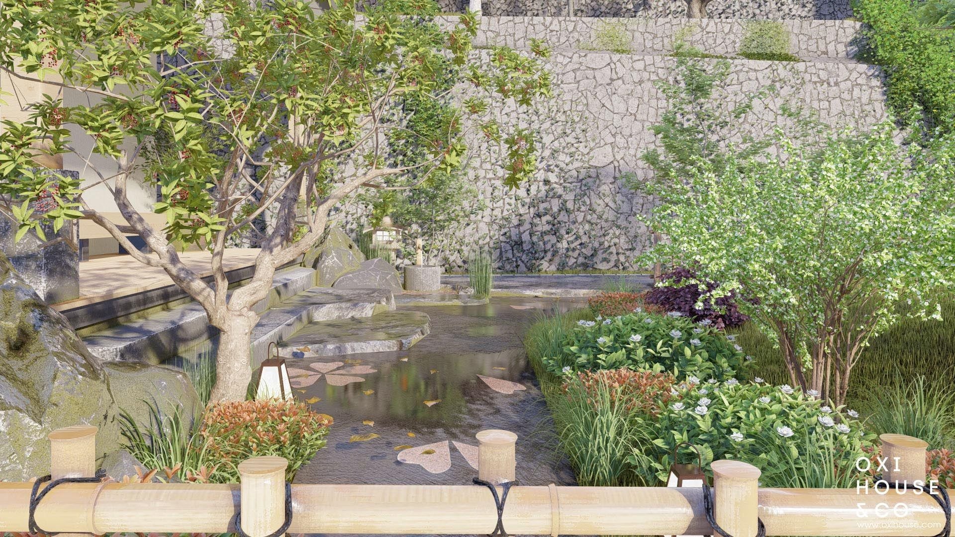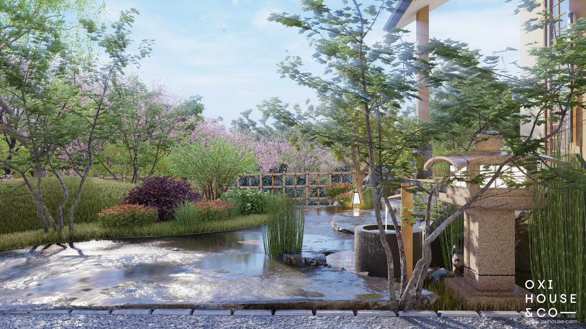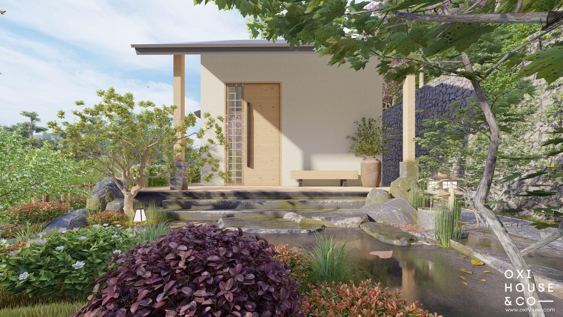 - Phong cách cảnh quan: Zen + cây địa phương kết hợp
