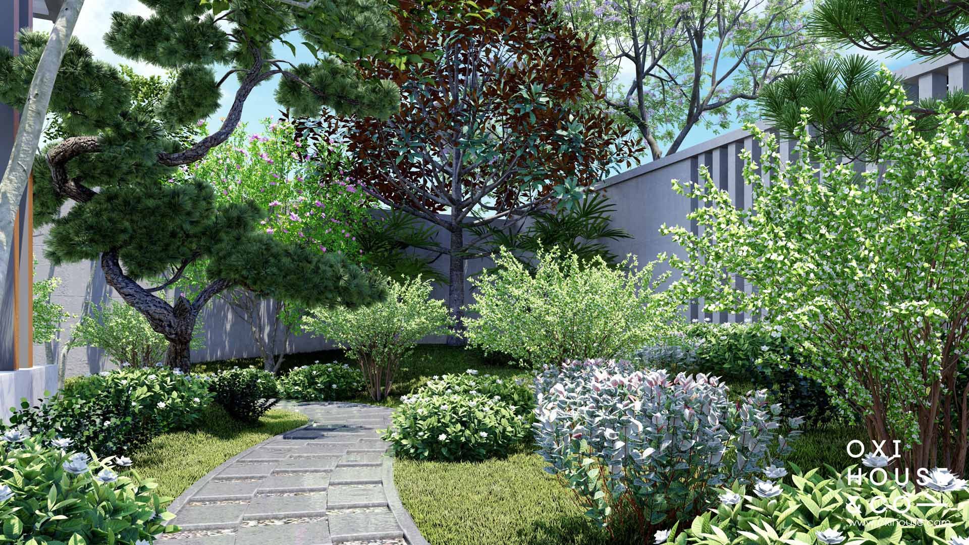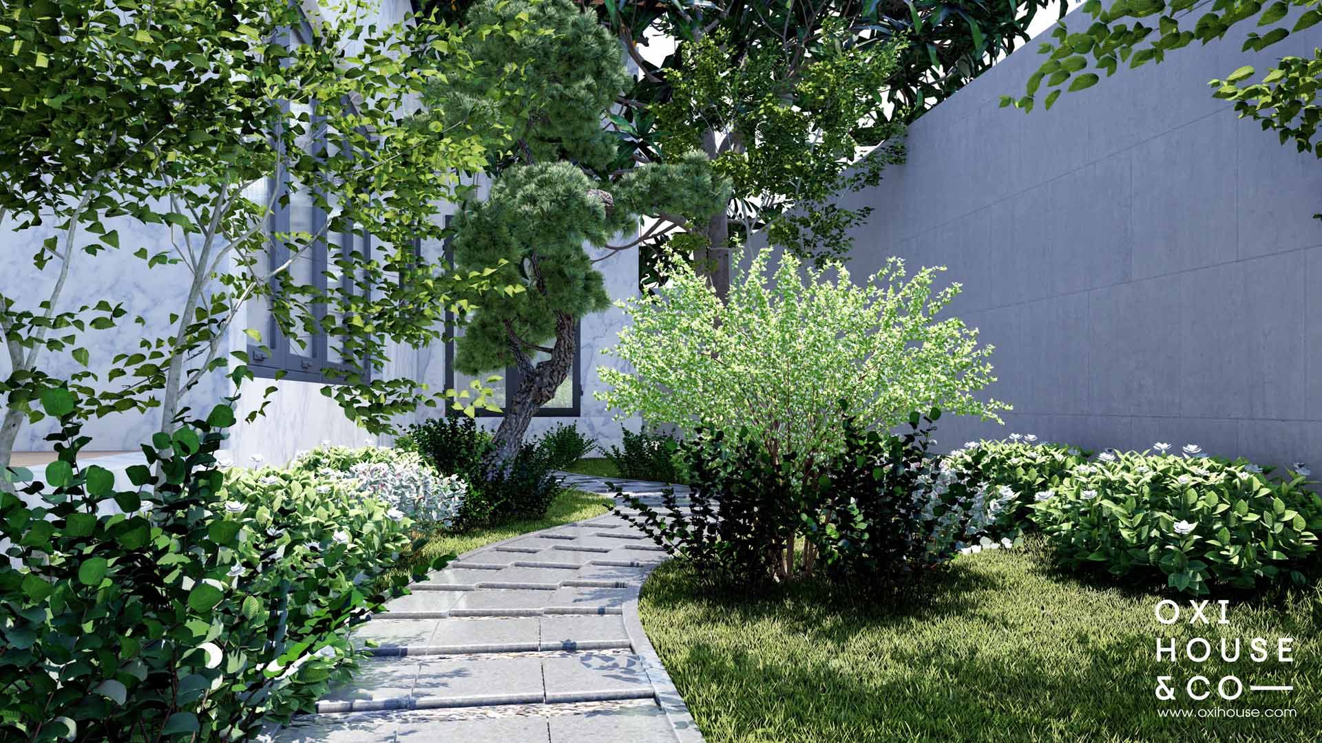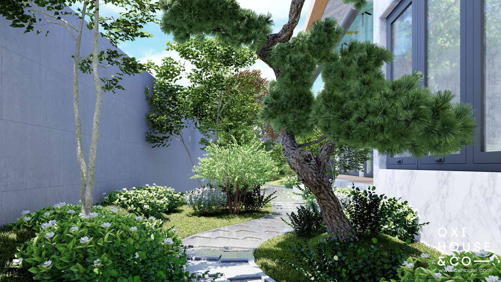 Sự kết hợp hài hòa giữa thảm cỏ xanh mướt, lối đi lát đá uốn lượn mềm mại cùng các tầng cây cảnh quan được lựa chọn tinh tế, phù hợp với khí hậu bản địa không chỉ mang lại giá trị thẩm mỹ cao mà còn tạo nên một "ốc đảo" thư giãn lý tưởng cho gia chủ.